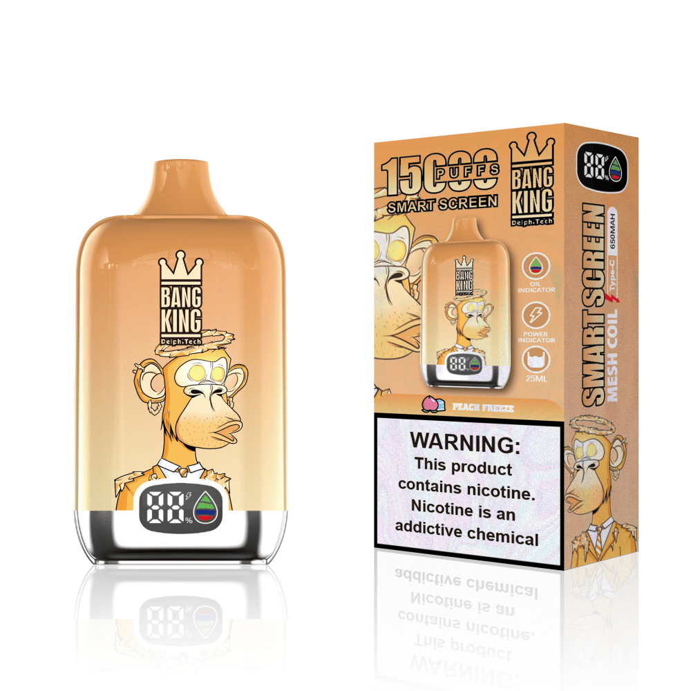Hvis hardwaren er skelettet i Bang King 15000, så er smagen Peach Freeze dens bankende hjerte. At skabe den perfekte frugtblanding er en balancekunst, som kræver ekspertise. Peach Freeze varianten er en mesterlig kombination af den dybe, naturlige sødme fra solmodne ferskner og en iskold mentol-finish. Ved det første sug bliver dine smagsløg mødt af den rige smag af fersken, der minder om en varm sommerdag i Nyhavn. Men lige som sødmen topper, skyller en forfriskende bølge af is ind over paletten og efterlader en ren, opkvikkende fornemmelse i halsen.